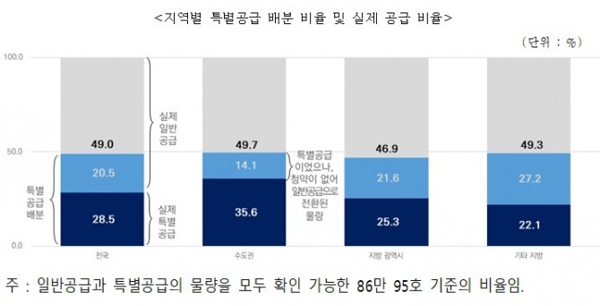 이에 따라 실제 수요자에게 공급된 특별공급은 28.5%에 불과했다.