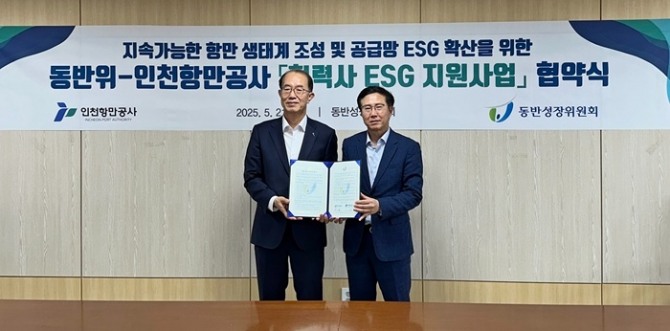이번 협약을 통해 인천항만공사는 사업추진을 위한 상생협력기금 5000만원을 출연하고, 동반위는 △업종·기업별 맞춤형 ESG 평가지표 개발 △ESG 교육 및 역량진단 △현장실사(컨설팅) △평가 등을 지원한다.