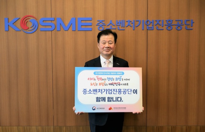이미지 확대보기강석진 중소벤처기업진흥공단 이사장이 보건복지부와 한국보건복지인재원이 공동 주관하는 ‘인구문제 인식개선 릴레이 캠페인’에 참여했다.