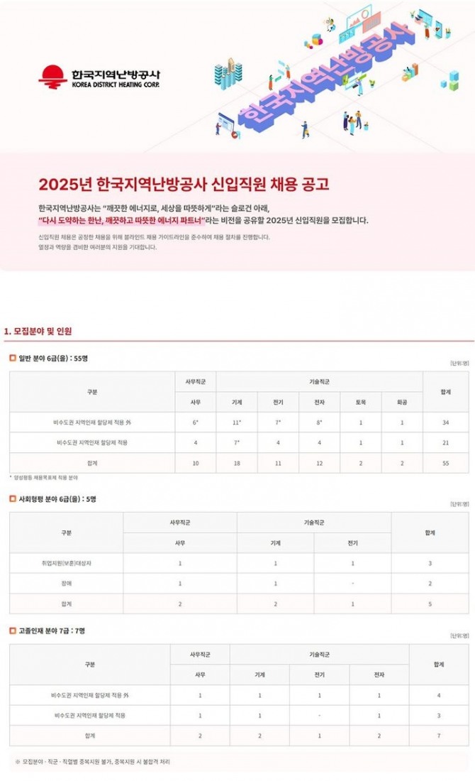 한난 관계자는 “한난은 블라인드 방식으로 공정한 채용을 진행할 예정이며, 열정이 가득하고 능력을 마음껏 펼칠 인재들의 많은 지원을 바란다”라고 말했다.