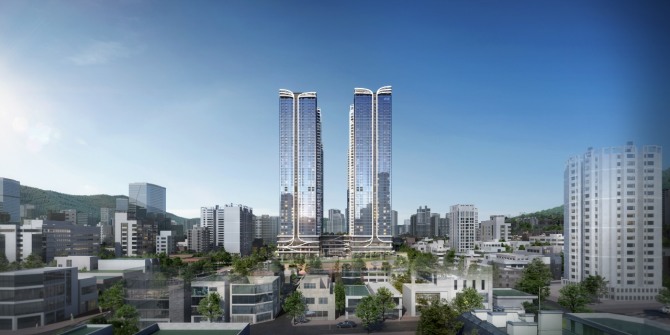 서면 써밋 더뉴는 옛 NC백화점 서면점 부지에 지하 8층~지상 47층, 4개동 규모로 조성되는 하이엔드 주거 단지다.
