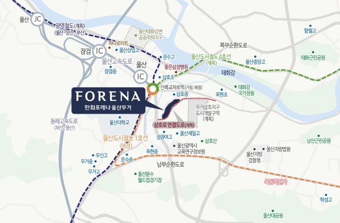 이 지역은 한화포레나 울산무거 외에도 이미 공급을 마친 삼호재건축, 개발을 앞둔 무거삼호지구 등 추가적인 대규모 브랜드타운 공급이 예상돼 울산에서 브랜드 아파트에 대한 갈증을 해소할 신(新)주거타운으로 부상하고 있다.