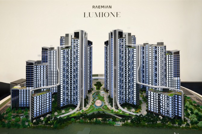 삼성물산은 이곳에 래미안 루미원을 120분의 1로 축소시킨 모형을 전시해놨다.