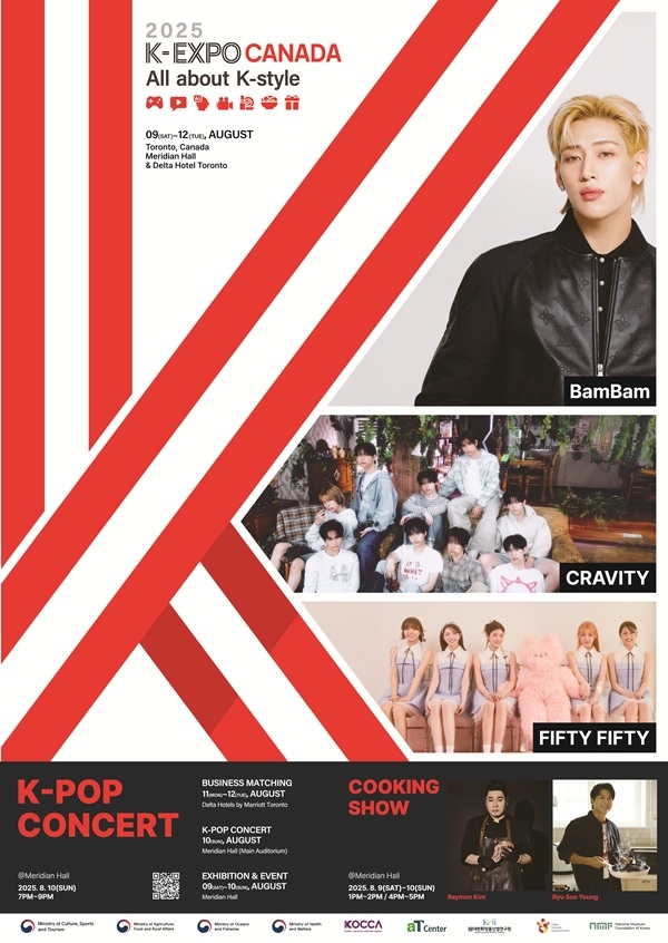 28일 콘진원에 따르면 오는 8월 9일부터 12일까지 캐나다 토론토 델타 호텔 및 메르디앙 홀에서 개최되는 K-엑스포는 세계적인 인기를 바탕으로 국가 브랜드 향상에 기여하고 있는 △K팝 △K-드라마 △K-게임 △K-웹툰 △K-푸드 △K-뷰티 등 산업을 한자리에 선보이는 종합 한류박람회로 K-콘텐츠와 연관 산업의 해외 동반 진출 확대를 목표로 한다.