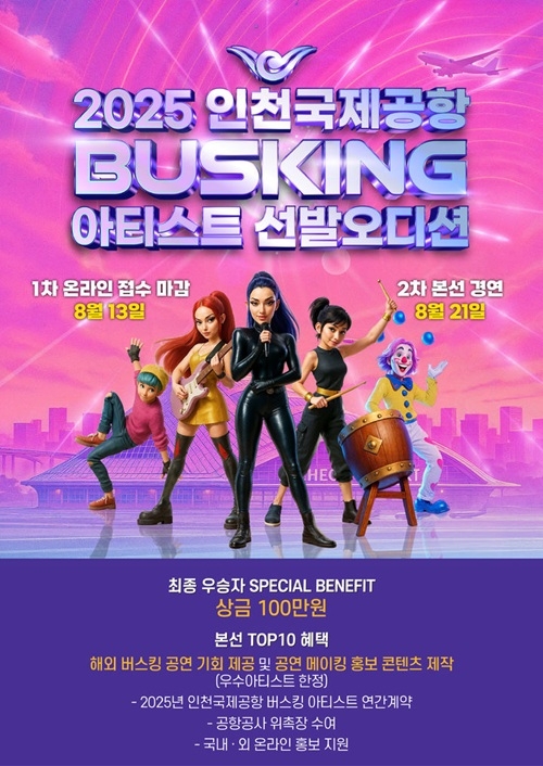 공사는 1차 영상 심사를 거쳐 25개 팀을 선발하고, 현장 공개 오디션을 거쳐 최종 10개 팀을 선정할 예정이다. 현장 오디션은 이달 21일 오후 1시 인천공항 제2여객터미널 중앙에 위치한 '그레이트홀'에서 공개 진행된다.
