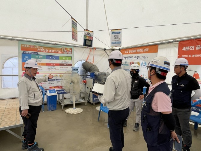 불시점검을 통해 온열질환 위험 공종별 전담 관리자를 지정‧배치하고 시간대별로 물, 식염정, 이온음료 등 수분 섭취 상황을 확인하도록 지시했다. 또 매시간 보냉장구 아이스팩 교체와 근로자의 건강 상태를 면밀히 관리할 것을 강조했다.