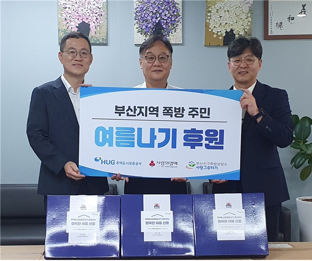 이번 활동의 일환으로 HUG는 부산지역 쪽방촌 거주민의 건강한 여름나기를 돕기 위해 전복죽과 밑반찬 등으로 구성된 영양식을 후원하고, 13일 부산진구 쪽방상담소에서 부산사회복지공동모금회와 함께 기부물품 전달식을 진행했다.