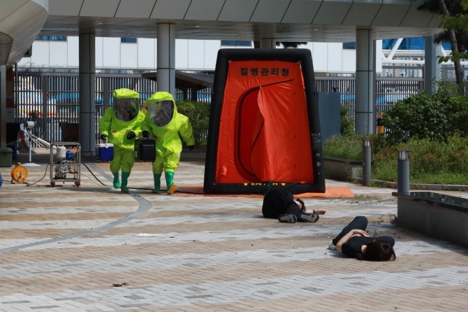 연습 둘째날인 19일 오후 1시 30분부터 인천항크루즈터미널에서 '사이버 및 드론 공격에 따른 통합방호훈련 및 다중이용시설 복합테러 대응훈련'이 이루어진다.
