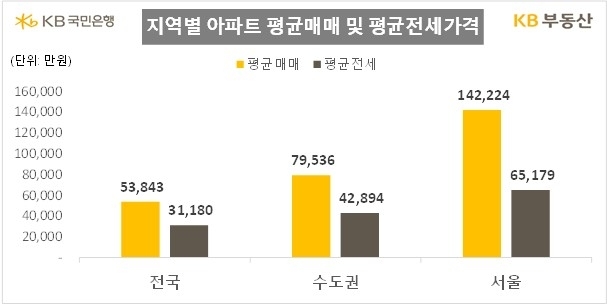 아파트 평균 매매가격은 전국이 5억3843만 원, 서울은 14억2224만 원으로 조사됐다. 서울 아파트 평균 매매가격은 지난달 14억572만 원을 기록해 2008년 통계 발표 이후 처음으로 14억 원을 넘어섰다.