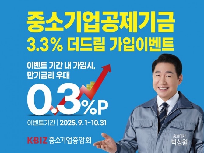 이미지 확대보기중소기업중앙회는 오는 10월 31일까지 중소기업공제기금에 가입하는 고객에게 연 0.3%p 우대금리를 더해 만기이자 3.3%를 주는 더드림 가입이벤트를 실시한다고 3일 밝혔다.
