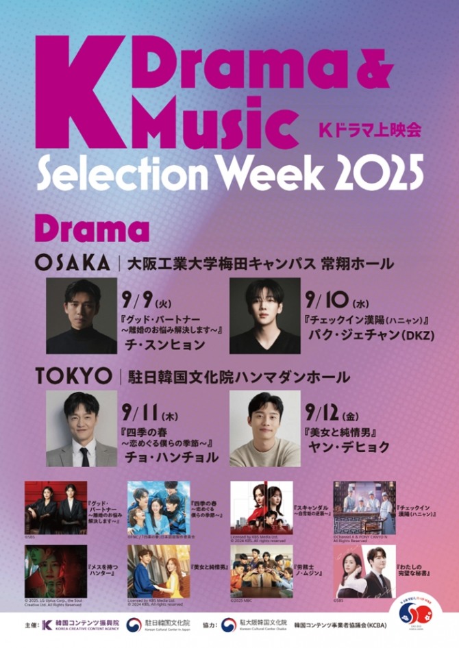 이미지 확대보기한국콘텐츠진흥원은 주일한국문화원과 함께 4~12일 일본 오사카와 도쿄에서 ‘K-드라마 & 뮤직 셀렉션 위크 2025’를 개최한다.