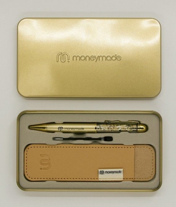 황금색의 철제 소재 케이스에 담긴 이 제품은 △황금볼펜 △리필심 △휴대용 가죽케이스 등이 포함됐다.