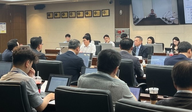 이미지 확대보기한국남부발전은 지난 9일 부산 본사에서 CEO 주재로 ‘하동화력의 슬기로운 전환을 위한 전사 에너지전환 TF 3차 회의’를 개최했다고 10일 밝혔다.