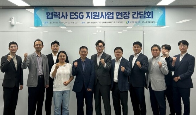 이미지 확대보기한국표준협회는 동반성장위원회와 지난 10일 대구경북지역 ‘협력사 ESG 지원사업’ 참여 기업을 대상으로 현장 간담회를 개최했다고 15일 밝혔다.