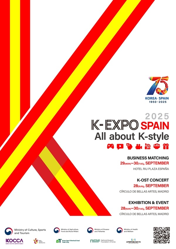 이미지 확대보기한국콘텐츠진흥원은 ‘2025 K-엑스포-올 어바웃 케이 스타일(K-EXPO : All about K-Style, 이하 K-엑스포)’를 오는 28~30일 스페인 마드리드에서 개최한다.
