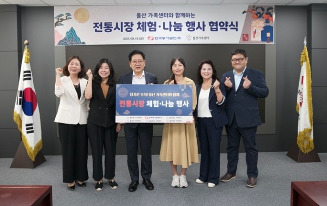 이미지 확대보기한국동서발전이 지난 19일 울산 중구 소재 본사에서 ‘추석맞이!전통시장 체험·나눔 행사’ 추진을 위한 업무협약을 체결했다.