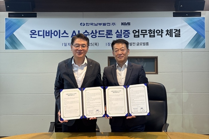 이미지 확대보기한국남부발전은 코아이와 지난 25일 남부발전 본사에서 '부산복합 온디바이스 AI 수상드론 실증 협약'을 체결했다고 26일 밝혔다.