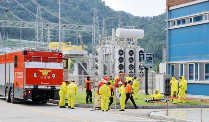 이번 훈련은 한빛본부 인근 지진 발생에 따른 산불, 화재 및 방사성 물질 누출 등 도전적인 복합재난 상황을 가정해 진행됐다.