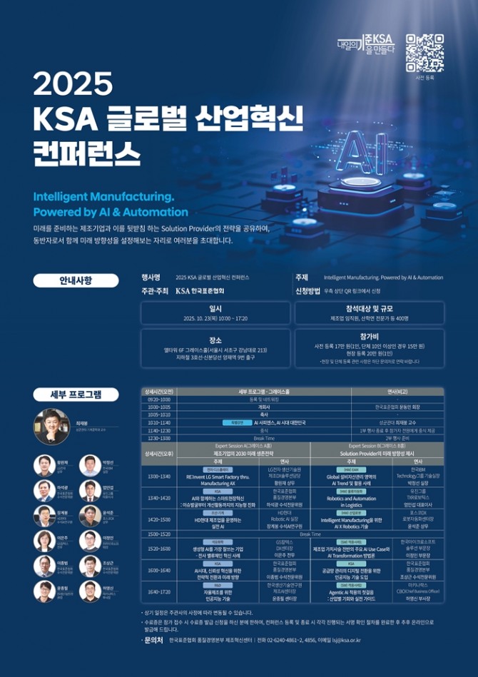 이미지 확대보기한국표준협회가 내달 23일 서울 서초구 엘타워에서 국내 제조혁신분야 대표 행사인 ‘2025 글로벌 산업혁신 컨퍼런스’를 개최한다.