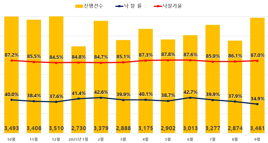 9월 낙찰률, 전달 보다 3.0%p 하락
