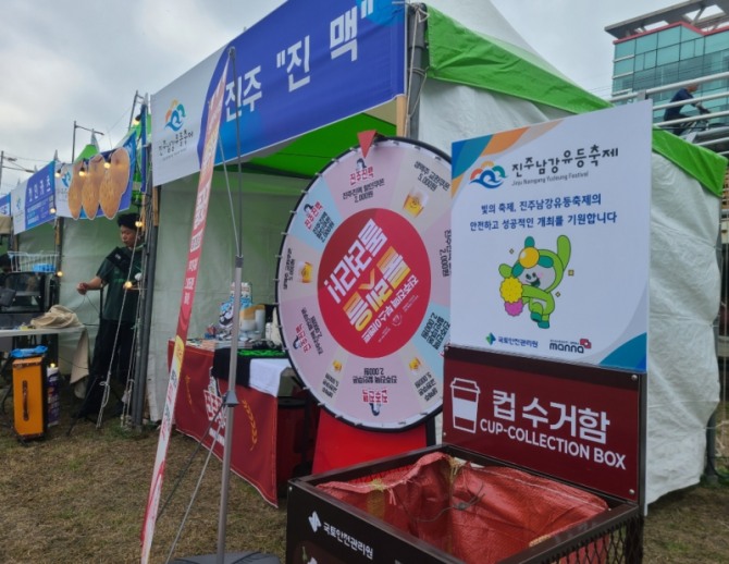관리원은 유등축제 K-MZ존, 중앙시장, 논개시장 등 많은 인파가 몰리는 장소를 중심으로 친환경 앞치마, 생분해성 봉투, 분리수거함, 컵 수거함 등을 무상으로 제공했다.
