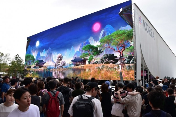 '마음을 모아(With Hearts)'를 주제로 한 한국관은 미디어파사드와 3개 전시관으로 구성돼 하루 평균 1만7000명이 방문했으며, 입장 대기시간이 2~3시간에 달할 정도로 인기를 끌었다.