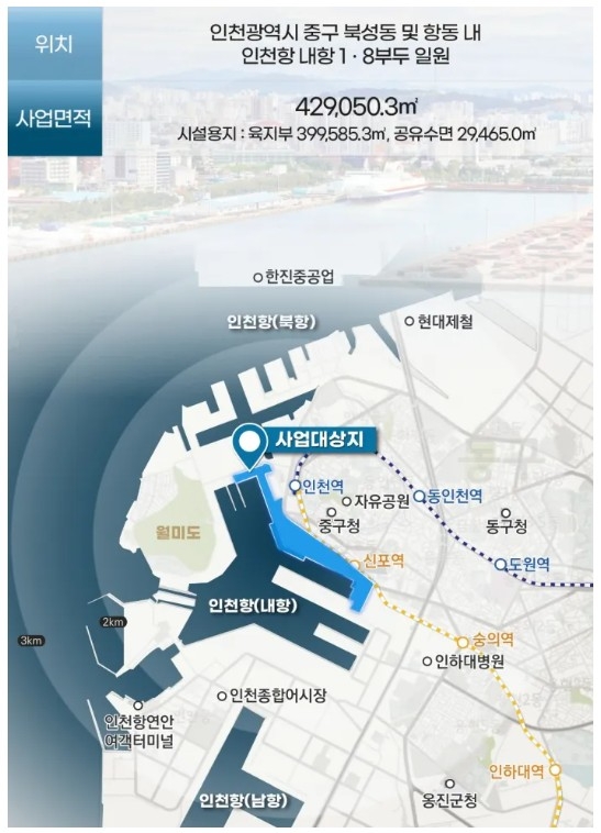 인천항만공사, 인천광역시, 인천도시공사 3개 기관이 함께 추진하는 인천항 내항 1·8부두 재개발사업은 2023년 12월 해양수산부에 사업제안서 제출을 시작으로 2024년 12월 실시협약 체결 이후, 올해 10월 인천항 내항 1‧8부두 재개발사업 사업계획을 확정했다.
