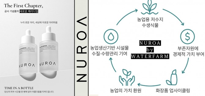 이미지 확대보기한국농어촌공사는 사내벤처팀 '워터팜'이 저수지 수생식물 마름을 활용한 친환경 뷰티 브랜드 '누로아(NUROA)'를 공개하고, 첫 제품으로 '누로아 앰플'을 21일 선보였다.