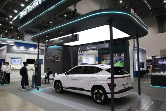 이미지 확대보기한화 건설부문은 22일 대구 엑스코에서 열린 ‘2025 대한민국 미래모빌리티엑스포’(DIFA)에 참가해 화재감지 기능을 강화한 차세대 천장형 전기차 충전 시스템인 EV 에어 스테이션을 선보였다고 밝혔다.