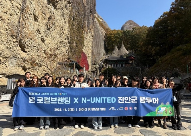 이미지 확대보기한국수자원공사는 지난 7일 거점국립대학 교류 연합회(N-United) 대학생들과 함께 전북 진안군과 용담댐 일대를 방문해 ‘댐 로컬브랜딩’의 현장 사례를 살펴보고, 지역과 공공이 함께 성장하는 발전 방향을 논의했다.