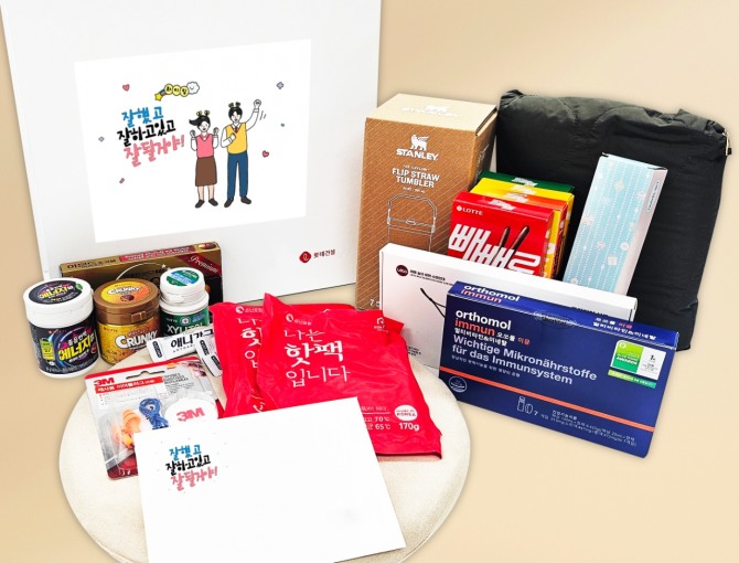 이미지 확대보기롯데건설은 올해 수능 앞둔 임직원 자녀들에게 방한용품과 텀블러, 이어플러그, 비타민 등 응원 선물을 전달했다고 11일 밝혔다.