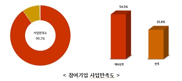 조사 결과, 응답기업의 90.2%가 스마트공장 구축사업에 ‘만족’했으며, 과반수 이상인 54.5%가 ‘매우 만족’하는 것으로 응답했다.