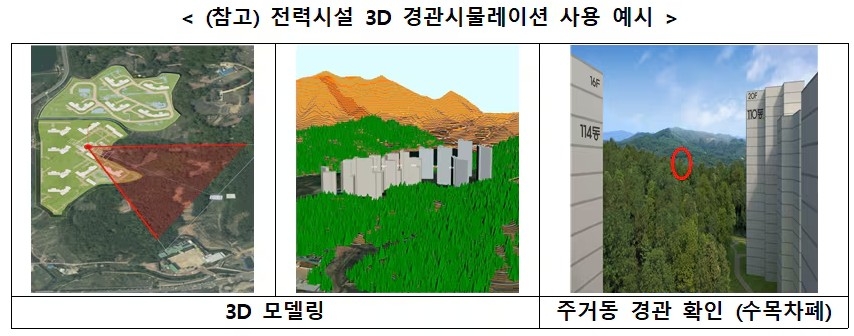 아울러 LH는 2026년부터 도시 설계단계부터 주민 시야와 조망권을 고려한 전력 인프라 설계를 가능케 하는 ’전력시설 3D 경관시뮬레이션‘을 도입한다. 해당 시뮬레이션은 입주자가 창문 밖으로 보게 될 전력시설 위치를 입체적으로 구현해 내, 입주민을 고려한 최적의 송전설비 위치와 차폐 방안 등 분석이 가능하다.