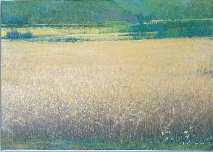 작가는 빛의 변화에 따라 달라지는 보리의 질감과 결을 세밀하게 포착해 캔버스에 구현했다. 은은하게 중첩된 색감과 자연스러운 표면 질감은 작품에 차분한 깊이와 온기를 더하며, 관람객에게 오래 남는 감정의 여운을 만든다.