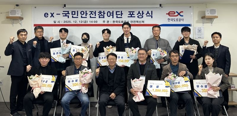 이미지 확대보기한국도로공사는 지난 12일 시민 이용 공중이용시설 또는 공중교통수단, 원료·제조물 관련 중대시민재해 예방을 위한 2025년 국민안전참여단의 우수활동자를 포상했다고 15일 밝혔다.
