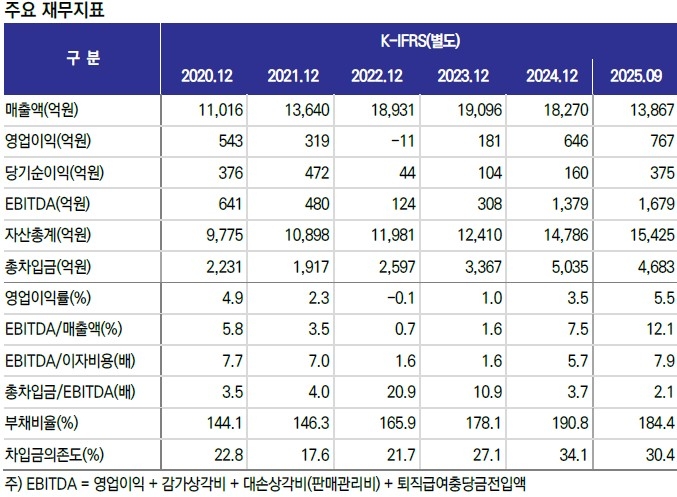 또 자산재평가 등으로 자본 규모가 2023년 말 4462억원에서 올해 9월 말 5424억원으로 확대됐고 순차입금 규모는 지난해 말 3201억원에서 9월 말 2832억원으로 감소했다.