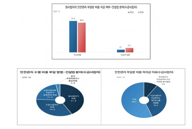 공정위는 “안전관리비를 지급받지 못한 업체(13.1%)의 34.2%는 사전에 하도급사가 비용을 부담한다는 약정을 체결한 상황이었다”고 전했다.