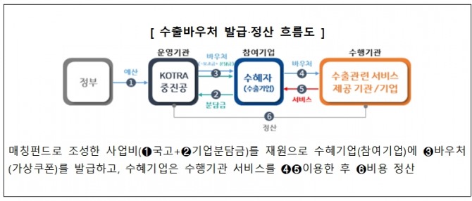 26일 코트라에 따르면 '수출바우처 사업'은 중소·중견기업이 정부로부터 바우처를 발급받아 다양한 수출지원 서비스 중 자사가 필요한 서비스를 자유롭게 선택해 이용하는 것으로 2017년 도입됐다.