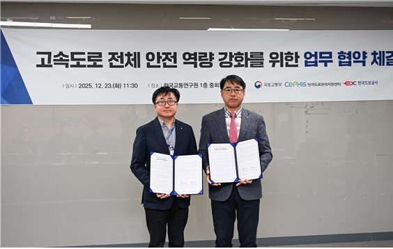 이미지 확대보기한국도로공사 인재개발원은 한국교통연구원 민자도로관리지원센터와 고속도로 전 구간의 안전관리 역량 강화를 위한 ‘교육 인프라 공유 업무협약’을 체결했다.