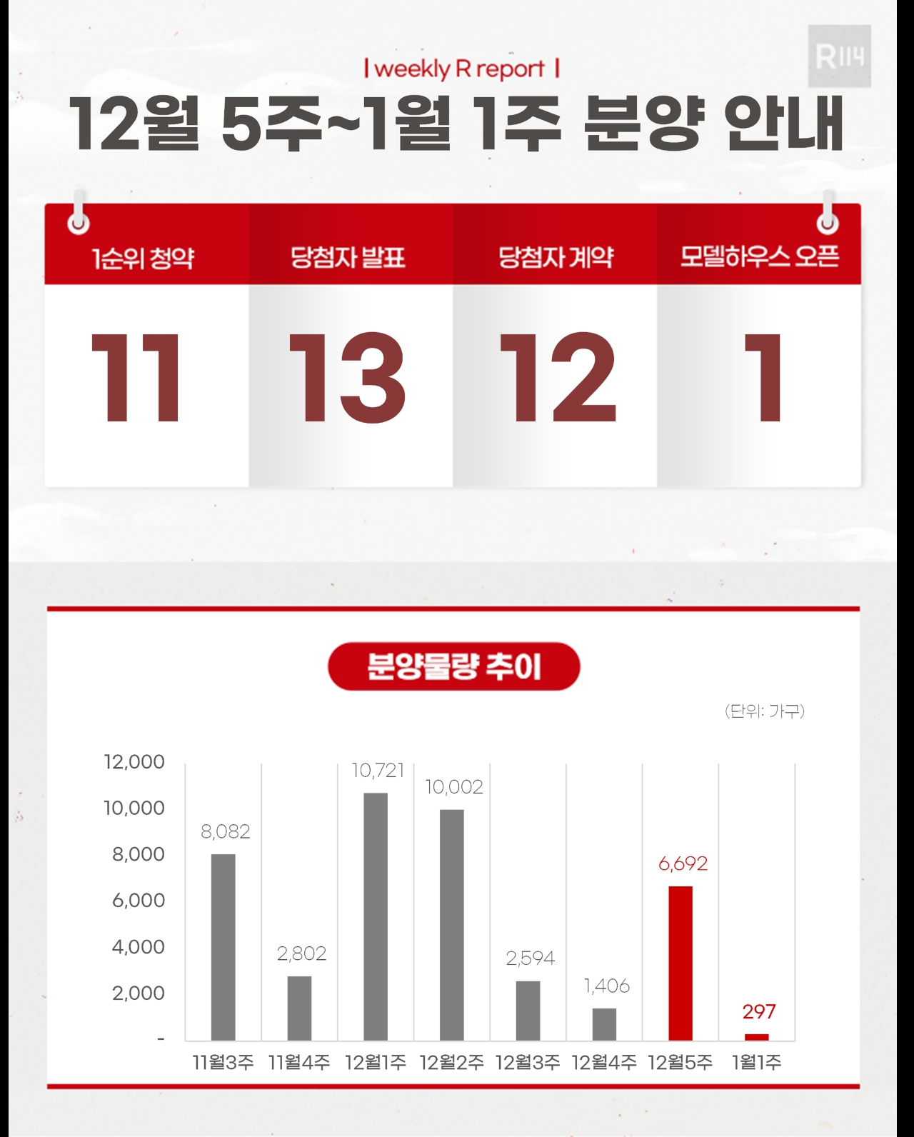 29일 부동산R114에 따르면 이달 12월 마지막 주에는 전국에서 아파트 10곳이 청약 접수를 진행한다.