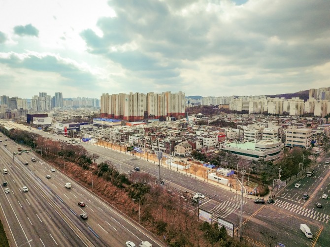 19일 한국부동산원 통계를 보면 수지구의 아파트 매매가격 상승률은 10·15 대책 영향이 본격화한 작년 11월 첫째 주부터 올 1월 둘째 주까지 4.25%를 기록했다. 용인시 수지구 일대 주택 단지. 사진=용인시청이미지 확대보기