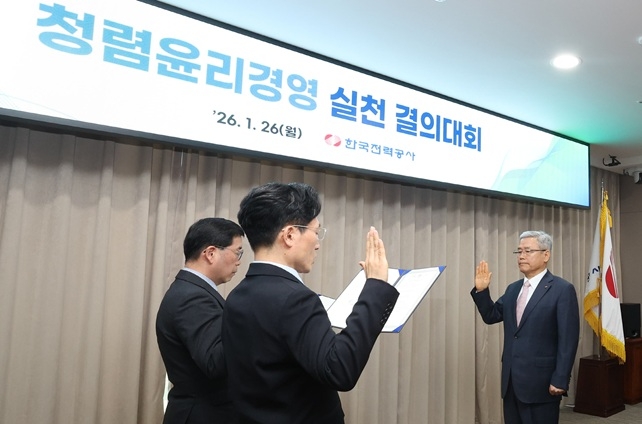 한국전력은 26일 한전 본사에서 전 임직원의 청렴윤리의식을 근본적으로 쇄신하고, 법과 원칙을 엄격히 준수하는 조직으로 도약하기 위해 ‘청렴윤리경영 실천 결의대회’를 개최했다.
