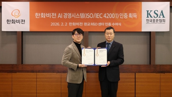 표준협회는 지난 3일 한화비전에 인공지능(AI) 경영시스템 국제표준인 'ISO·IEC 42001' 인증을 수여했다고 4일 밝혔다.