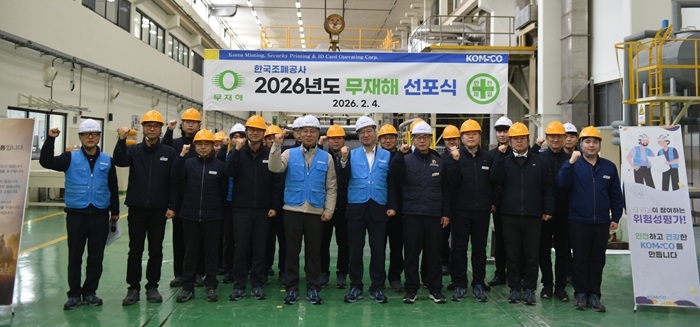 이미지 확대보기한국조폐공사는 지난 4일 충남 부여 제지본부에서 ‘산업재해 & 중대재해 ZERO’ 달성을 위한 2026년도 무재해 선포식을 개최했다.