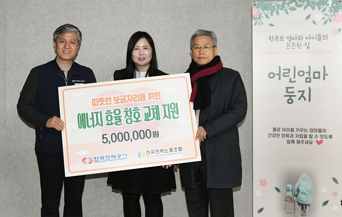 김동철 사장과 최철호 전국전력노조위원장은 지난 10일 전남 나주시 ‘나주동신요양원’과 ‘어린엄마둥지’를 방문해 취약계층이 따뜻한 명절을 보낼 수 있도록 후원금을 전달하고 해당 시설의 에너지 효율 개선을 지원했다.