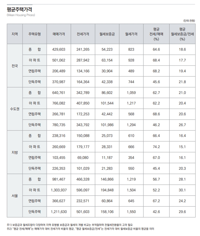 서울 평균 주택 매매가격은 전국 평균(4억2960만 원)의 2.3배에 이르고 비수도권(지방) 평균 매매가격인 2억3832만 원과 비교하면 4배 값이다.