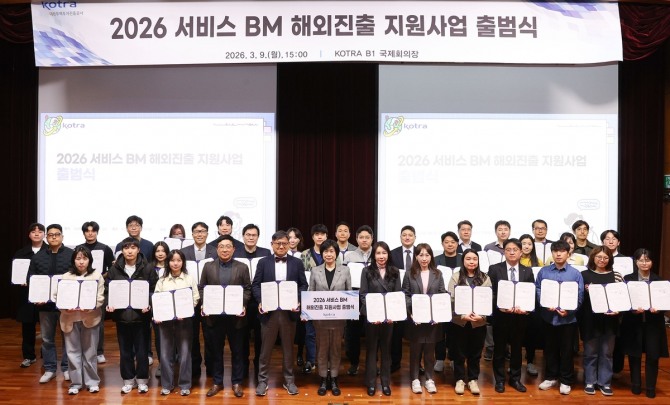 이미지 확대보기대한무역투자진흥공사(이하 코트라)가 ‘2026 서비스 브랜드마케팅(BM) 해외진출 지원사업’ 출범식을 열고 서비스기업 해외 진출 지원에 나섰다.