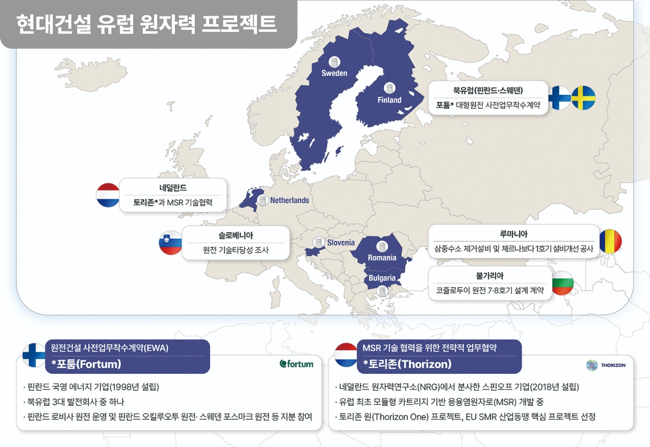현대건설 관계자는 “최근 핀란드와 스웨덴을 비롯한 북유럽 국가들은 급증하는 전력 수요에 대응하고 온실가스 배출 제로를 이행하기 위해 원자력에 관심을 보이고 있다”며 “현대건설은 북유럽 대형 원전·SMR 사업 확대로 글로벌 원전 슈퍼사이클을 주도할 것”이라고 말했다.