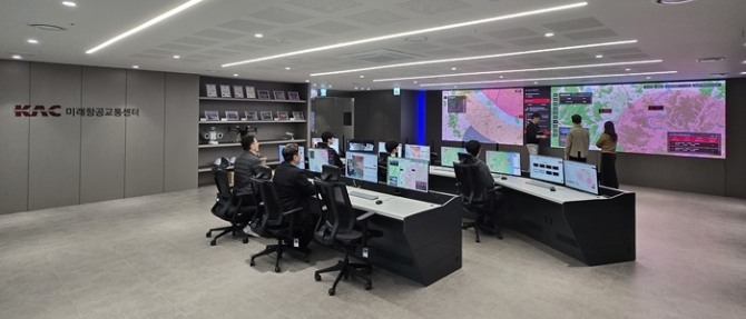 한국공항공사 미래항공교통센터에서 공사가 자체개발한 'KAC 드론교통관리(UTM) 시스템'을 설명하고 있다. 사진=공항공사이미지 확대보기