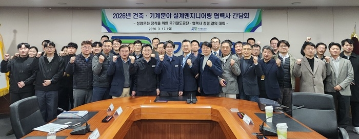 이미지 확대보기국가철도공단 SE융합본부는 2026년 발주계획을 공유하고 협력사와의 동반성장 방안을 모색하기 위해 ‘건축·기계 설계 엔지니어링 분야 간담회’를 개최했다.